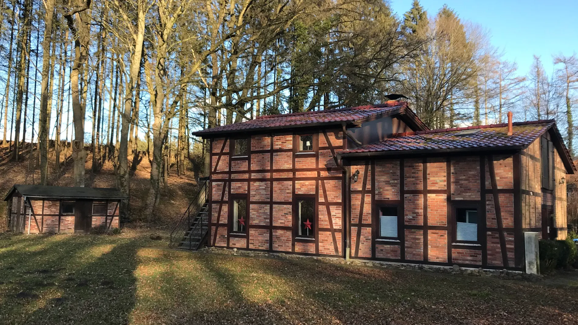 Ein Waldgebiet in unmittelbarer Nähe lädt zu Geländespielen und Naturerkundungen ein.