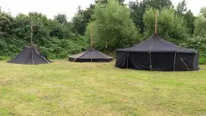 Der Platz ist bereit für große und kleine Lager. Das erste Sommerlager fand 2016 statt, das größte 2018. Die befestigte Feuerstelle ist fertig und liegt zentral auf einer von einem Erdwall geschützten Wiese. Die Großzeltwiese (ca. 800m²), die Theaterwiese (mit großer Naturbühne) und die Ruhewiese sind alle gut nutzbar. Alle Wiesen sind von Erdwällen mit Brombeeren, Blumen, Sträuchern oder Obstbäumen umrandet und somit vor Blicken und Wind geschützt. Auch Parken ist auf der Wiese problemlos und störungsfrei möglich. Es gibt ein Kompostklo sowie je einen Holzunterstand für Brennholz bzw. Stangenholz zum Pionieren. Insgesamt umfasst die Wiese rund 1.600m².