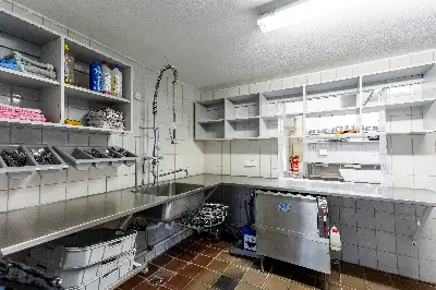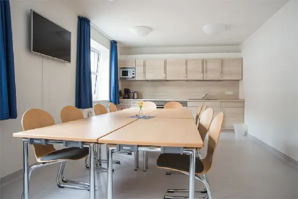 Speisesaal und Küche für große Gruppen (bei Buchung des Haupthauses)